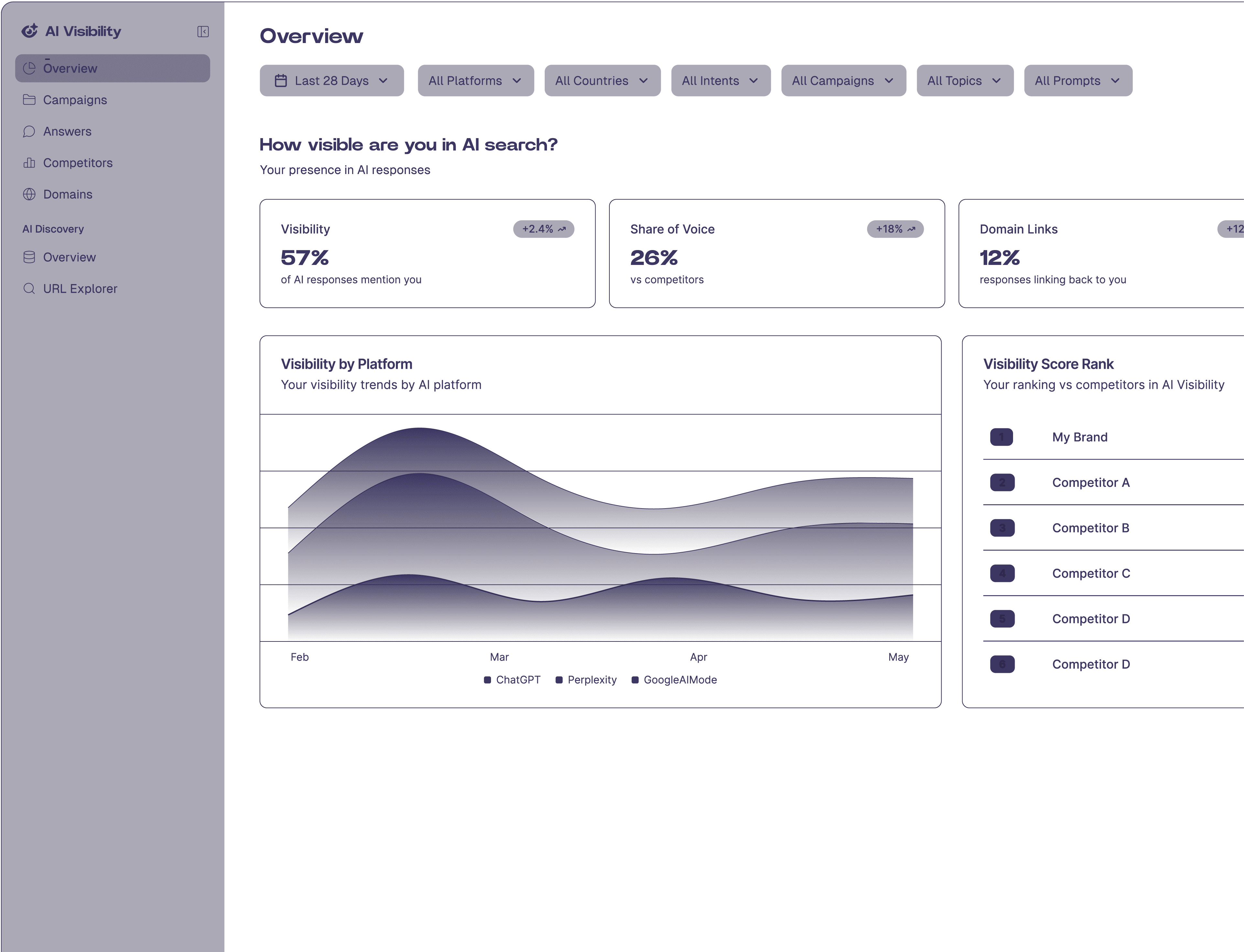 Know where you stand in AI search. Increase visibility, drive revenue, and 10x productivity with our AI agents.
