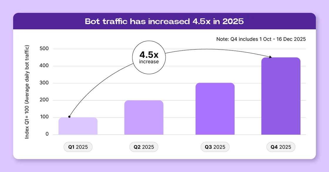 Across 2025, we observed a staggering increase in AI bot traffic growth. For brands, this shift to AI-first search has implications not just for your strategies, but for your operational priorities and budgets as well.
