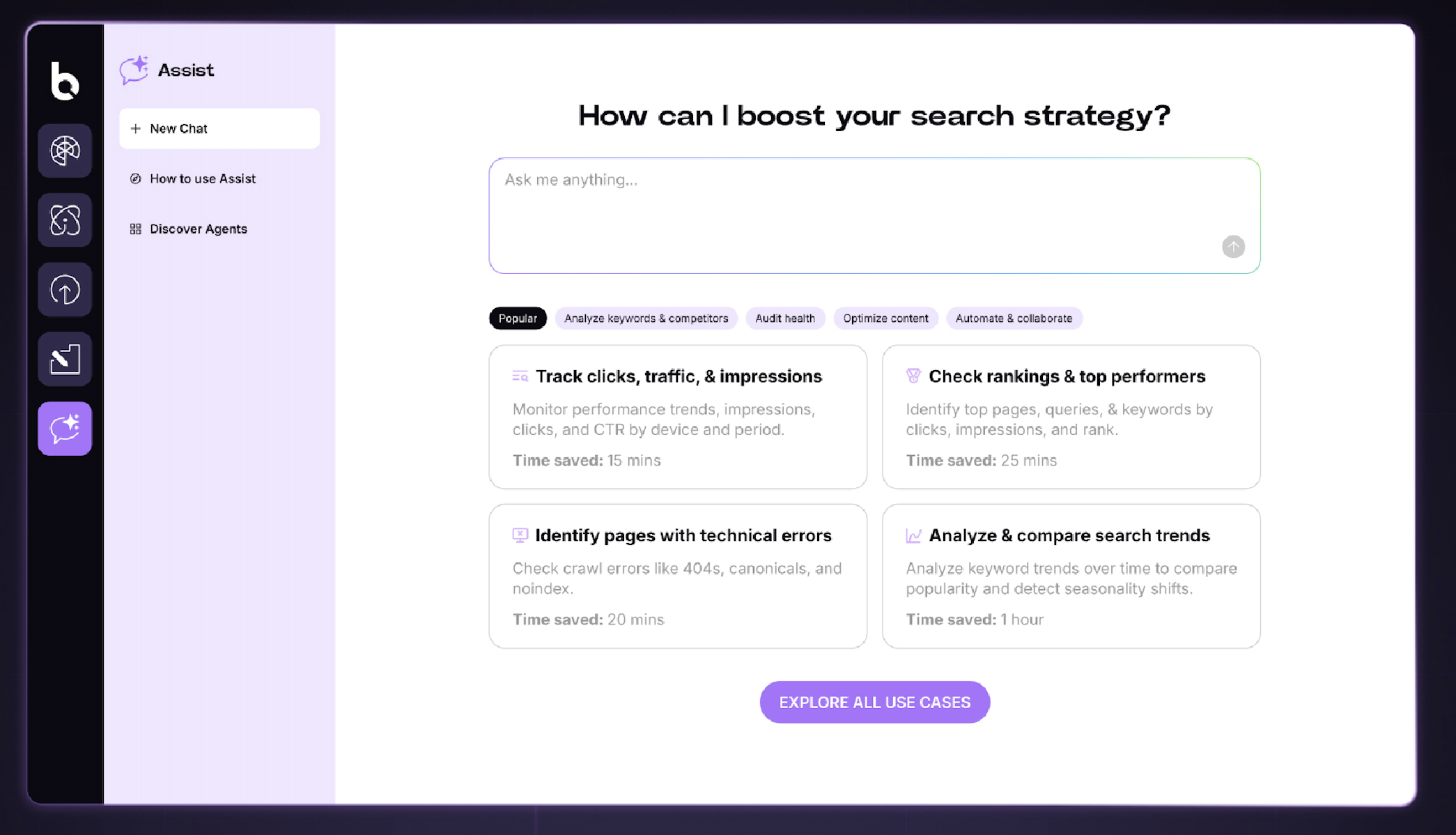 With its powerful AI agents, Botify Assist isn’t here to replace your team. Rather, it’s here to empower them, turning hours of manual work into hours saved through strategic automation.