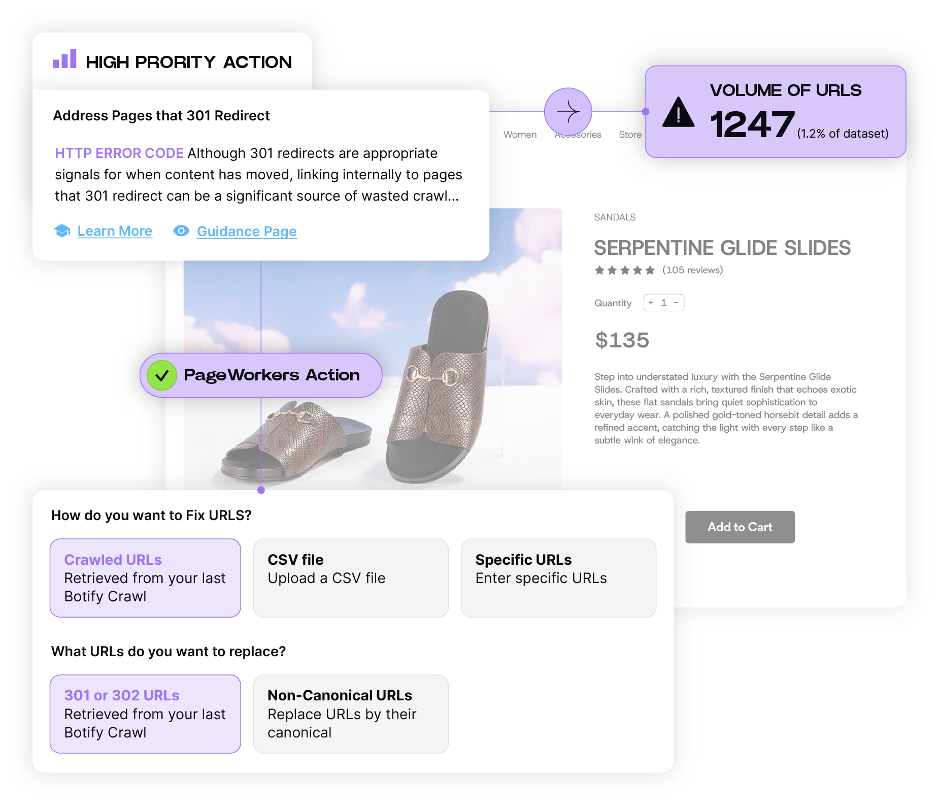 ActionBoard gives you prescriptive insights, rather than simply telling you what’s wrong. Pair its recommendations with Botify Activation tools like PageWorkers to implement changes at scale, without waiting in engineering queues.