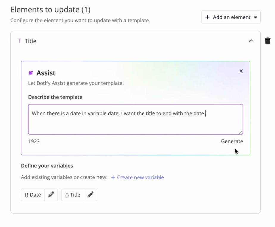 For example, if you want to add the published date to the end of an article title or add schema data, Assist can identify the right elements and build the template logic in seconds. No digging through code or complex setup, just a quicker path from idea to optimization.